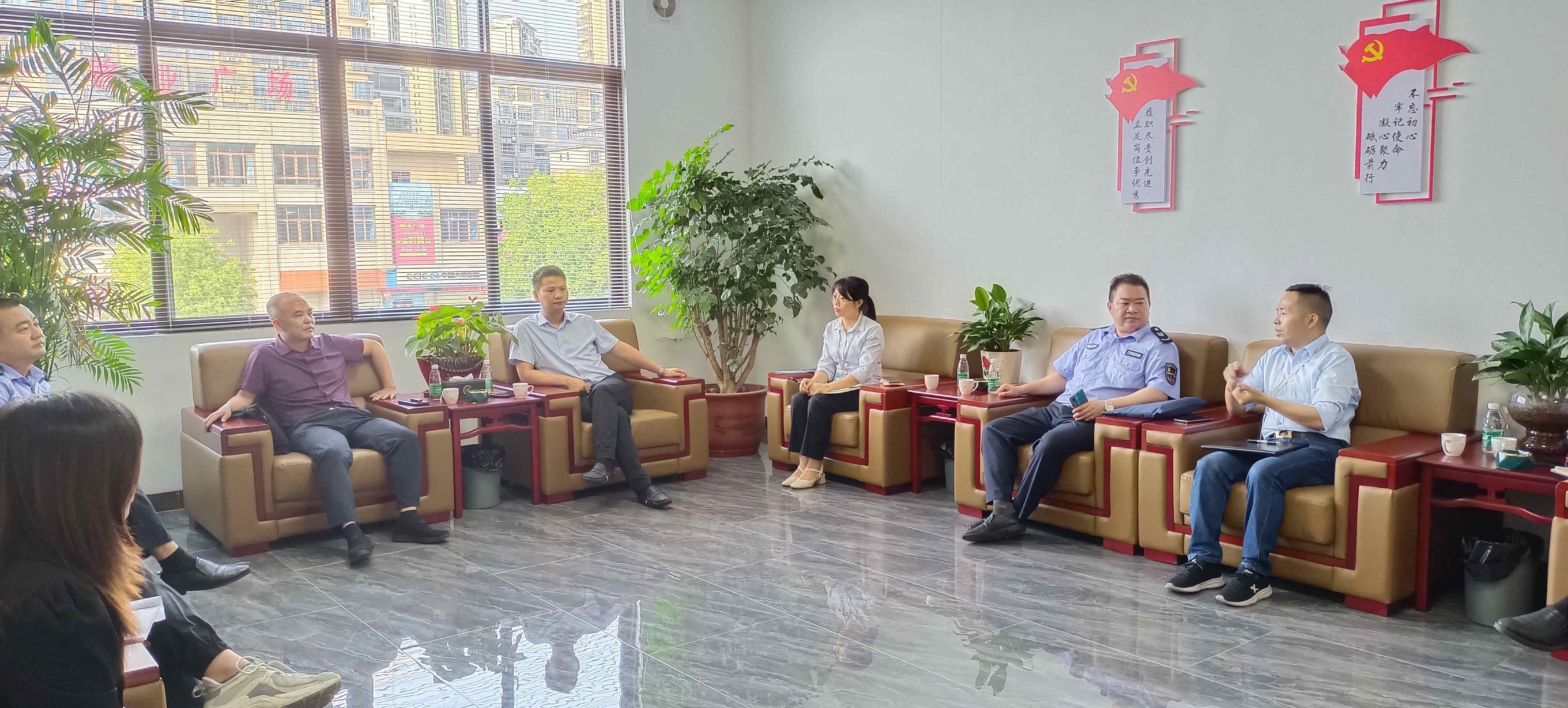 2023年5月25日下午,蕉嶺縣人社局黨組書記、局長江斌、縣人社局副局長王建強帶領社保局、勞動監(jiān)察執(zhí)法大隊、就業(yè)中心工作人員一行到訪海龍化工總部,開展2023年“人社局長千企行”暖企助企調(diào)研活動,傾聽企業(yè)所需所盼,為企業(yè)排憂解難。公司總經(jīng)理賴仕海、副總經(jīng)理龍偉國、人力資源總監(jiān)余佛龍、財務經(jīng)理陳杏娜出席此次座談會。