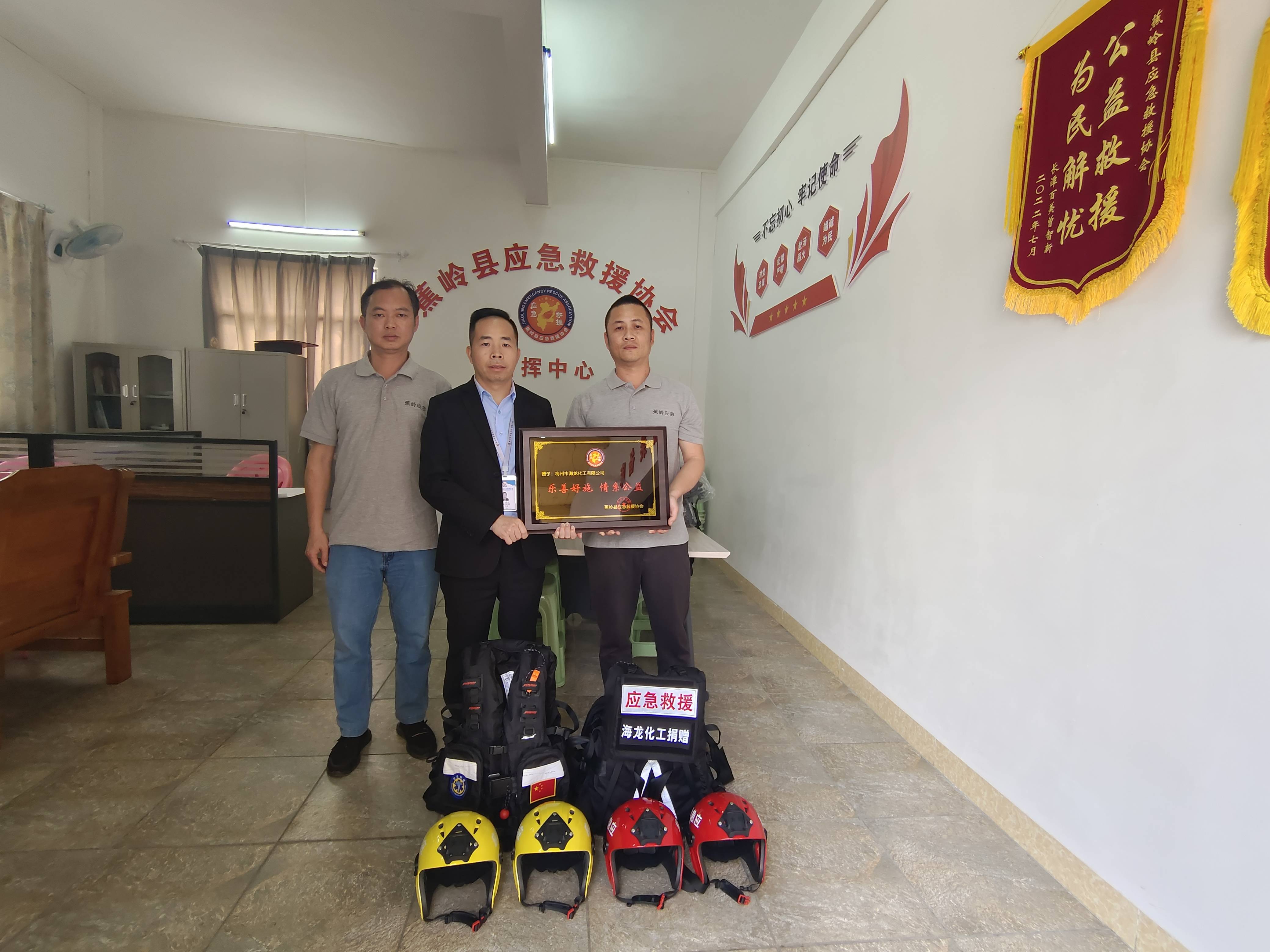 一次次應(yīng)急現(xiàn)場的沖鋒、一件件應(yīng)急裝備的支持,更加堅(jiān)定了我們共同為應(yīng)急事業(yè)獻(xiàn)出一份責(zé)任的心之所向。為表謝意,蕉嶺縣應(yīng)急救援協(xié)會(huì)會(huì)長向梅州市海龍有限公司贈(zèng)送了榮譽(yù)牌匾。